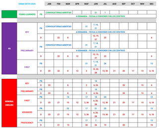 (Para Young Learners y exámenes en colegios depende de la convocatoria)