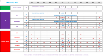 TODAS LAS CONVOCATORIAS DE EXAMEN DE FECHA FLEXIBLE (A2 y B1 FOR SCHOOLS) Y LOS EXÁMENES EN ORDENADOR (DIGITAL) SE PODRÁN REALIZAR TANTO EL DÍA DE REFERENCIA COMO EL ANTERIOR O EL POSTERIOR DEPENDIENDO DEL NÚMERO DE PERSONAS MATRICULADAS